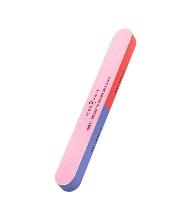 Side 3: Fine Grit To Neaten Edges - Deze knalroze kant heeft een fijne grit van 320 en is vooral geschikt voor het netjes maken van de nagelranden.