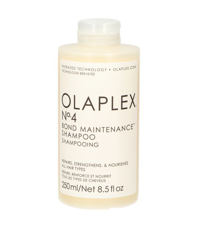Olaplex Bond Maintenance Shampoo No 4 250ml is een reinigende en hydraterende Bond Maintenance Shampoo. Deze shampoo is geschikt voor chemisch behandeld en beschadigd haar. Olaplex No.4 Shampoo verbetert zichtbaar de interne haarstructuur en geeft het haar extra glans. Door stylen, föhnen en verven raakt het haar beschadigd en worden de haarverbindingen gebroken. Olaplex is een hulpmiddel waarmee je het beschadigde haar blijvend herstelt. Olaplex Bond Maintenance Shampoo repareert, versterkt en hydrateert alle haartypes en is geformuleerd met het gepatenteerde Olaplex Bond Building Chemistry. De formule is 100% vegan, dierproefvrij en vrij van sulfaten, parabenen en gluten. Olaplex Shampoo is veilig te gebruiken op gekleurd haar.