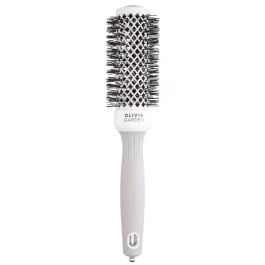 De keramische coating van de borstel zorgt voor een snellere verwarming en de ventilatie gaten versnellen het droogproces van de haren. De NanoThermic-technologie helpt statische elektriciteit uit het haar te verwijderen en heeft een extra antibacterieel effect. De ionische borstelharen houden het haar gezond en stralend. Olivia Garden Expert Blowout Shine ronde borstels zijn ideaal voor het creëren van perfecte blowout looks met volume. De borstel is bestand tegen hitte tot 230 graden. Het handvat is ergonomisch, lichtgewicht én er zit een handige verdeelpunt in verwerkt voor het maken van secties. De bruin met gouden kleur staat luxe en chique in de salon.