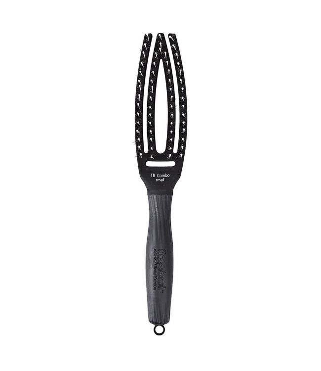 Olivia Garden Borstel Fingerbrush Combo Small is een anti-statische en geïoniseerde borstel met een combinatie van zwijnen en nylon haren. Deze borstel is goed voor het ontwarren en stylen van het haar, het super snel drogen en dagelijks borstelen. Het ergonomische handvat is licht en ideaal voor een ontspannen styling. De gebogen peddel met zachte balpunttips omhelst de hoofdhuid en de grote luchtgaten voorkomen dat het haar oververhit en uitgedroogd raken. Het verdeelpunt op het einde van het handvat is perfect om het haar te verdelen in secties.