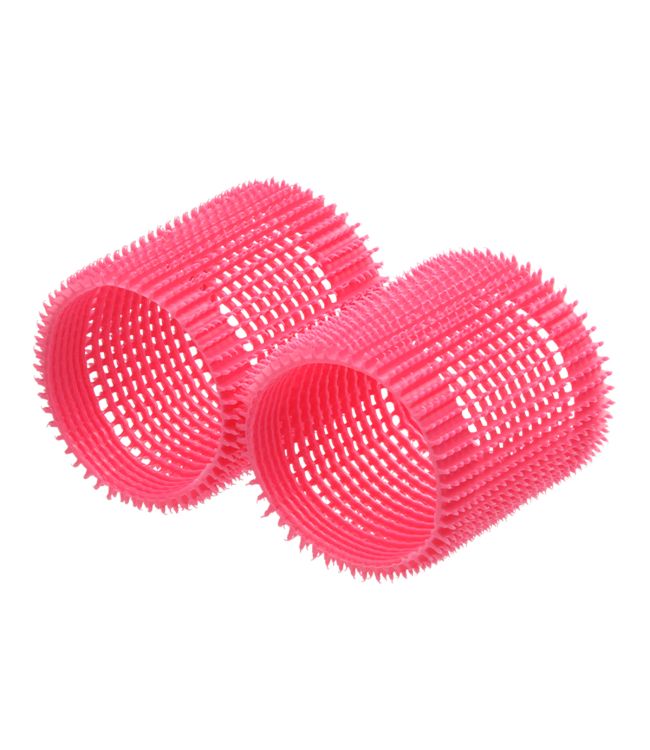 Olivia Garden Jet Set Rollers Rose 65mm 2st. is een set van 2 zelfgrijpende krulspelden. De Jet Set krulspelden hebben kleine rubberen tandjes die het haar "grijpen", waardoor het gemakkelijk en stevig om de roller heen komt te zitten. De Jet Set Rollers zijn ideaal voor permanent, setting & styling. De rollers zijn verkrijgbaar met verschillende diameter. Afhankelijk van het gekozen formaat en de lengte van het haar kun je gaan voor gedefiniëerde krullen, beachy waves of extra volume en textuur. De rollers hebben grote openingen, waardoor je gemakkelijk product kunt uitspoelen en sneller kunt drogen. De rollers hebben een self-gripping oppervlakte waardoor je sneller kunt werken. Het materiaal is zacht en gemaakt van rubber, wat geen schade toericht aan het haar. De rollers zijn eenvoudig te reinigen en zowel geschikt voor professioneel gebruik als thuis gebruik. De roze rollers hebben een diameter van 65mm (inclusief tandjes). Deze krullers zijn ideaal voor lang haar met een lengte van 20 tot 61 centimeter.
