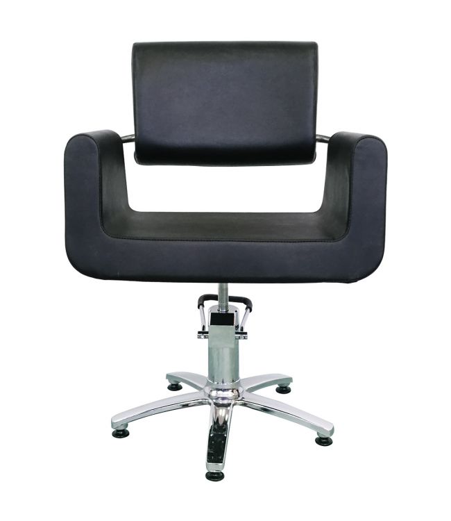 Original Best Buy zwarte kappersstoel Garonne, met beweegbare rugleuning, hoofdsteun, hydraulische pomp en geïntegreerde voetensteun. Zeer stabiel, extreem robuust. De basis is gemaakt van verchroomd staal. De Garonne kappersstoel is antislip dankzij rubberen kussentjes aan de onderkant. De zitting is bekleed met zwart kunstleer. De zithoogte is verstelbaar van 40 - 50 cm.