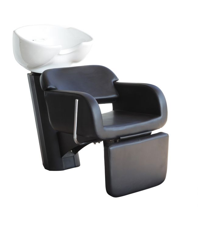 Opera Cool Wasunit Zwarte stoelbekleding met witte stiksels is een wastafel met vaste rugleuning en stoel met zwarte bekleding met witte stiksels. De kolom onder de wasbak is gemaakt van polyurethaan en heeft een metalen structuur die met epoxy-verf is behandeld. Epoxy-verf zorgt voor hoge mechanische en chemische bestandheid. De wastafel heeft een manueel verstelbare voetsteun met handvat aan de rechterkant van de stoel. De opening in de rugleuning maakt het eenvoudig om de stoel te reinigen.