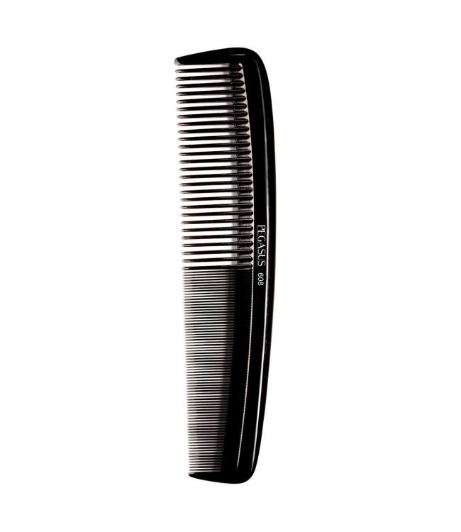 Kam Pegasus I Am Perfect & I Know It 608 Herenkam Middel is een herenkam kam speciaal voor precisie styling die een brede en smalle kant heeft. Dankzij het breedte verschil levert deze kam perfecte styling en een uniek uiterlijk. De I Am Perfect & I Know It 608 Herenkam Middel maakt de weg voor het stylen van het haar makkelijk vrij en levert hierdoor pijnloze styling. Deze kam is bestand tegen hoge temperaturen en chemicaliën en beschadigt het haar niet. De I Am Perfect & I Know It 608 Herenkam Middel is geschikt voor stylen en een echte musthave voor professionals.