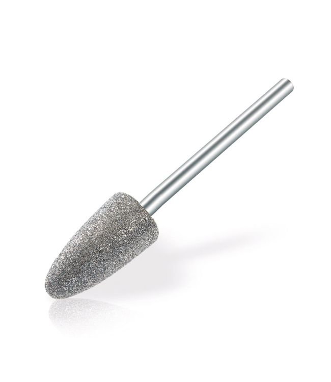 De afgeronde kegel heeft een doorsnede van 7mm, werkgedeelte van 16mm en schacht diameter van 2,28mm. Deze universele maat past op bijna elke nagelfrees. Het geadviseerde toerental bereik voor dit bitje is tot 20.000 toeren per minuut. Het saffieren bitje is steriliseerbaar.