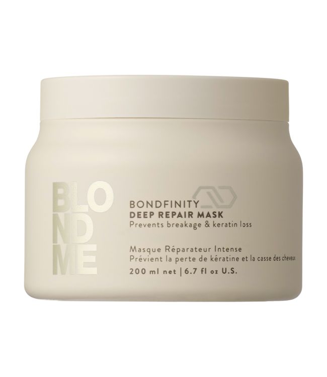 Het Bondfinity Deep Repair Mask heeft een diep verzorgende formule met de baanbrekende Bondfinity-Technology. Deze formule voldoet aan de behoeften van geblondeerd haar met diepe voeding, reparatie en versterking, zonder het haar te verzwaren. Dit maakt het masker ook geschikt voor fijn haar. Het masker is volledig veganistisch en PETA-gecertificeerd. Het Deep Repair Mask komt uit de Blond Me Bondfinity lijn van Schwarzkopf. De producten met deze technologie creëren verbindingen die zich binden aan de keratinestructuur, waardoor keratineverlies wordt verkomen en het haar veel sterker wordt.