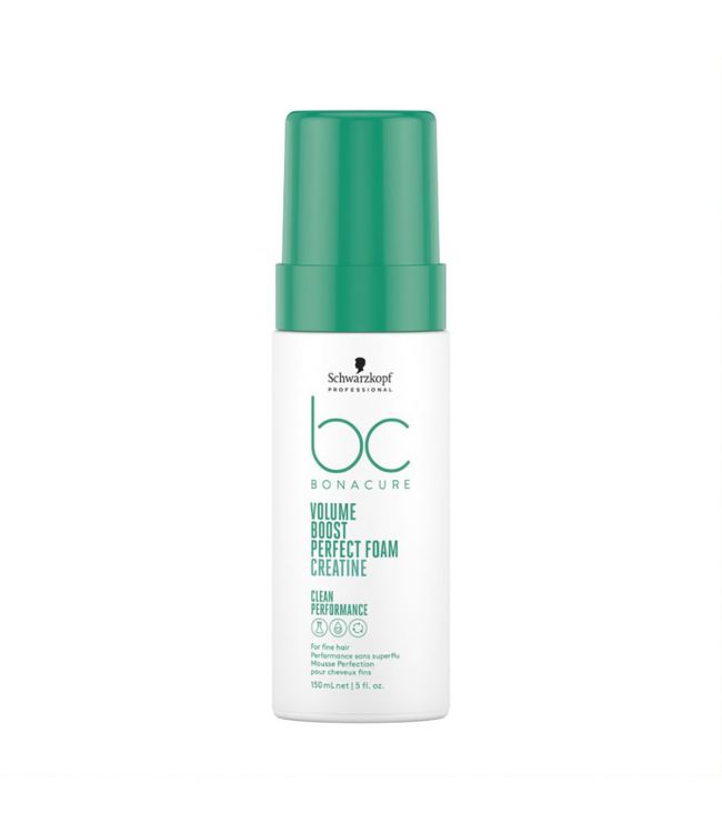 Schwarzkopf Bonacure Volume Boost Perfect Foam 150ml is een volume mousse waarmee je haar bij de aanzet optilt en volume toevoegt aan fijn haar. Schwarzkopf Bonacure Volume Boost Perfect Foam verbetert de hanteerbaarheid van het haar en helpt beschermen tegen föhn-schade. Het speciale mondstuk maakt een eenvoudige toepassing op de wortels of lengtes mogelijk. Volume Boost is verrijkt met Creatine, dat vooral bekend staat om het verbeteren van fysieke prestaties en kracht. Creatine zorgt voor meer volume tot wel 48 uur en geeft een voller haargevoel. Daarnaast bevat de conditioner Vegan Keratine om de natuurlijke elasticiteit en inwendige haarstructuur te verbeteren. Vegan Keratine werkt met 9 aminozuren die de haarstructuur daadwerkelijk herstellen in plaats van enkel opvullen.