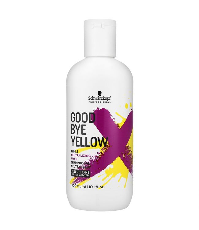 Schwarzkopf Goodbye Yellow Shampoo 300ml is een zeer sterk-gepigmenteerde anti-yellow shampoo speciaal voor geblondeerd haar. Deze no-yellow shampoo neutraliseert ongewenste gele tinten in blond haar, doordat de shampoo paarse pigmenten bevat. De shampoo heeft een pH-waarde van 4,5, dit zorgt voor een snelle hechting van de kleurpigmenten aan het haar en voor een maximale neutralisatie van ongewenste geeltinten. Schwarzkopf Goodbye Yellow Shampoo is een no yellow shampoo die sulfaatvrij is en speciaal is ontwikeld voor blond, geblondeerd en grijs haar.