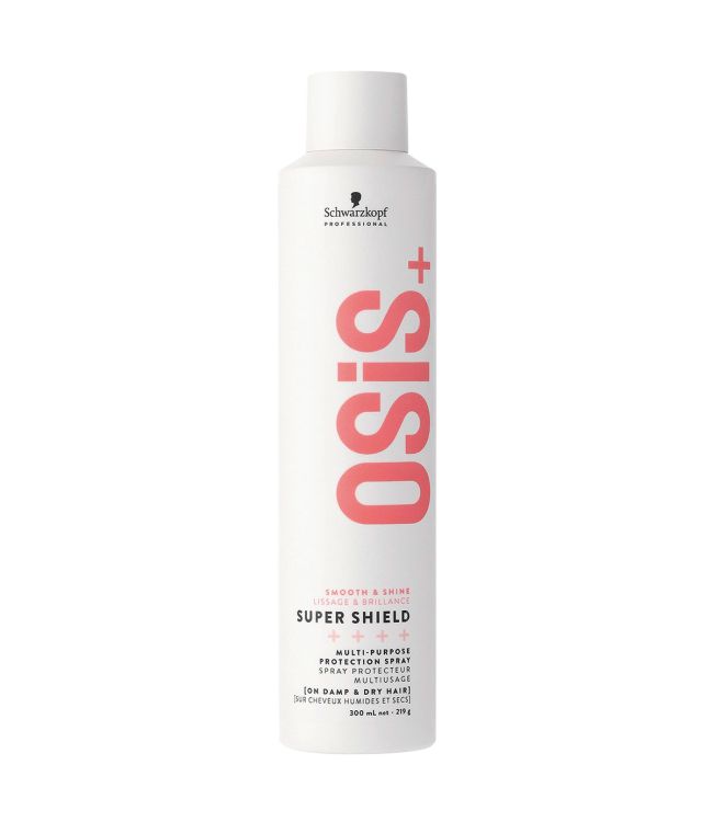 Schwarzkopf Osis+ Super Shield Protection Spray 300ml is een multifunctionele beschermingsspray om het haar te beschermen tegen vervuiling, hitte en luchtvochtigheid. De lichtgewicht formule is verrijkt met gehydrogeneerde olijfolie en vormt een beschermend laagje om het haar zonder dit te verzwaren. De spray bevat geen hold en behoudt zo de natuurlijke uitstraling en het gevoel van het haar. Osis+ Super Shield gaat pluizig haar tegen en ontwart tegelijkertijd. Dof haar krijgt een geweldige glansboost. Bovendien beschermt de spray tegen vervuiling, vochtigheid en hitte van stylingtools tot 230°C. Ontwarren en kammen wordt gemakkelijker gemaakt en pluis en fly-aways worden getemd voor een smooth resultaat. De spray is vooral geschikt voor medium tot lang haar, dat snel pluist en gemakkelijk klit. Schwarzkopf Osis+ Super Shield komt uit de Smooth & Shine collectie van Osis+. De formule is 100% veganistisch.