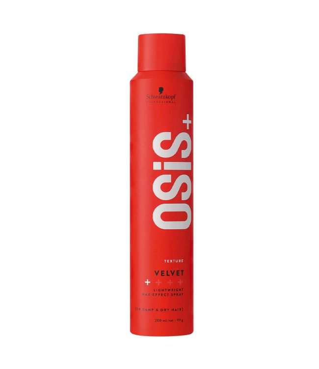 Schwarzkopf Osis+ Velvet Wax-Effect Spray 200ml is een spray voor definitie en glans zonder plakkerigheid of vettigheid. De ultra fijne spray met wax-effect geeft een fluweelzacht, lichtgewicht aan alle haartypes en is zelfs geschikt voor zeer fijn haar. De Velvet Spray is verrijkt met glycerine en panthenol voor een zacht en glanzend gevoel zonder vettig te worden. De spray zorgt voor een hervormbare en buigbare definitie en heeft een lichte hold van 1/4. De Velvet Spray is lichtgewicht en zal het haar niet verzwaren. De spray is geschikt voor alle haartypes van fijn tot medium en dik haar. Schwarzkopf Osis+ Velvet komt uit de Texture collectie van Osis+. De formule is 100% veganistisch.