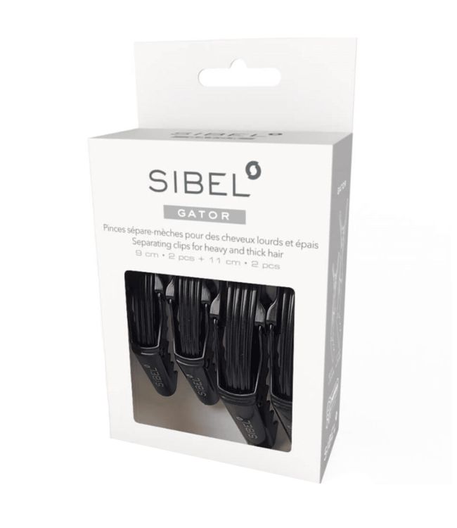 Sibel Gator Verdeelclips Haaienbek 2x 9cm + 2x 11cm Zwart zijn sterke klemmen om het haar te verdelen. De haaienbek klem heeft stevige tanden die goed in het haar blijven zitten. Dit maakt de Gator Clips dan ook perfect voor het verdelen van dik, zwaar en lang haar. In de verpakking zitten 2 klemmen van 9 cm lang en 2 klemmen van 11 cm lang. De clips zijn gemakkelijk te openen en sluiten met het brede handvat. Deze klemmen hebben een zwarte kleur en zijn gemaakt van kunststof.