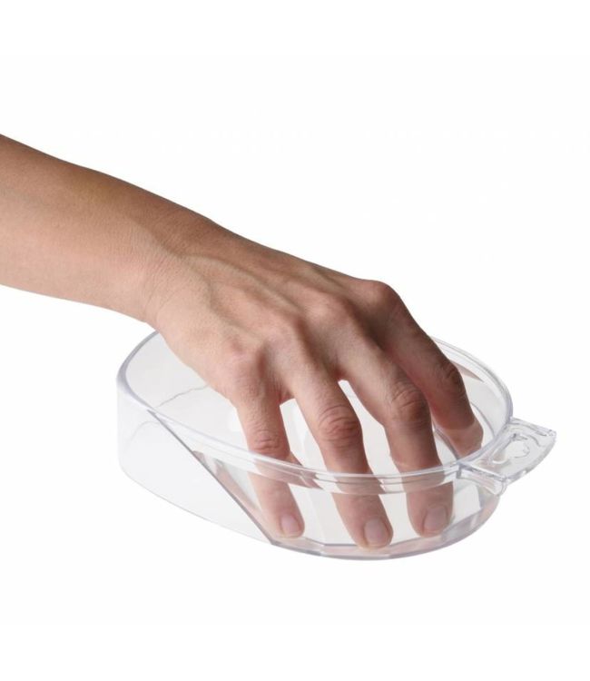 Sibel Nails Manicureschaal Transparant is een kom voor manicure behandelingen. In dit doorzichtige handbadje kunnen de vingers ondergedompeld worden in een verzorgend bad. De vorm van het bakje is speciaal aangepast op de handen. Deze Manicure Bowl is onmisbaar bij het stylen van nagels om de nagelriemen rond de nagels te laten weken en zacht te laten worden. De kom is gemaakt van transparant kunststof en gemakkelijk schoon te maken na gebruik.