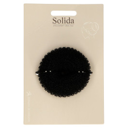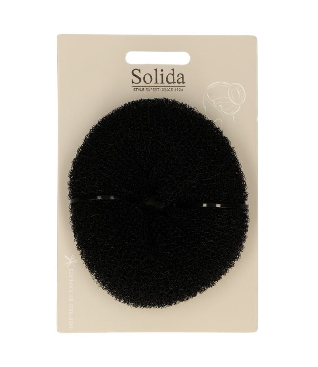 Solida Haardonut Groot Zwart is een handige dotvulling voor het opvullen van je opgestoken haar. Deze haar donut is een ideaal hulpmiddel voor prachtige knotten. De haar donut in zwart is speciaal gemaakt voor zeer donker tot zwart haar. Het haar wordt om de haardonut heen gevouwen, maar als er toch een stukje donut zichtbaar is valt dit minder op door het zwarte materiaal van de dotvulling. Zo maak je gemakkelijk een grote, volle knot, zonder dat het opvalt dat je een haardonut draagt. Deze grote haardonut heeft een diameter van 9cm.