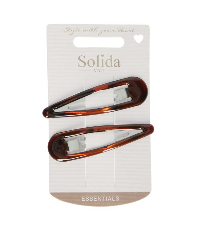 Solida Haarspeld Bruin 2st. is een set van 2 glanzende haarclips in een bruine kleur. Deze clips klikken gemakkelijk in het haar en blijven stevig zitten. De glanzend bruine kleur past perfect bij iedere outfit. In de set zitten 2 haarspelden met een lengte van 7cm.