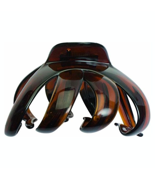 Solida Klem Octopus Bruin is haarklem in een donkerbruine kleur. Deze klem wordt octopus genoemd doordat hij 8 "tentakels" heeft. De klem heeft een stevig scharnier en blijft goed zitten in het haar. Deze neutrale kleur staat prachtig bij iedere outfit. De klem is 6 cm breed op het breedste punt.