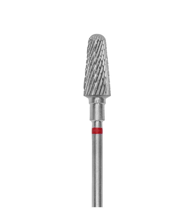 Staleks Pro Carbide Bitje Frustum Rood Fijn 6mm/14mm is een opzet bit voor een elektrische nagelfrees. Dit bitje heeft de vorm van een kegel met een ronde tip. Het bitje heeft een diameter van 4mm en een fijne grit. Dit frees bitje is ideaal voor het corrigeren van kunstnagels, het verwijderen van kunstmatig materiaal en het behandelen van de voeten en tenen bij pedicure behandelingen voor onder andere de veerwerking van verhoorning en eelt. Dit bitje is geschikt voor het verwijderen van hard nagelproduct zoals acryl, acrylgel, builder gel, BIAB of gel polish. De frees is ook te gebruiken bij problemen aan de natuurlijke nagels.