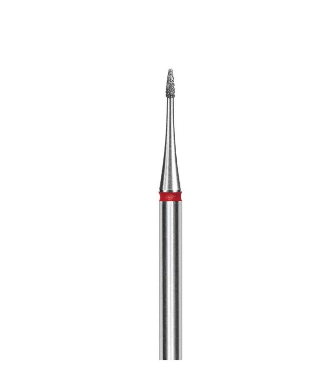 Staleks Pro Diamantfrees Bitje Mini Flame Rood Fijn 1.0mm/3mm is een super klein opzet bit voor een elektrische nagelfrees. Dit bitje heeft de vorm van vlam een diameter van 1mm en een fijne grit. De flame heeft een stompe neus en is perfect voor het werken met gevoelige nagelriemen. Ook is deze stompe neus ideaal voor het dieper schoonmaken van zijwallen en laterale nagelplooien en het verwijderen van eelt. De frees heeft een rood bandje, wat aangeeft dat deze een fijne, zachte grit heeft. De fijne grit is geschikt voor dunne tot normale huid en nagelriemen. Het freesbitje is gemaakt van roestvrij staal met een verhard laagje diamant poeder. De standtijd van diamant is 30 tot 40 keer hoger dan van hardmetaal. De diamanten coating maakt het freesje langer bruikbaar. De frezen van Staleks Pro zijn dan ook gespecialiseerd voor professioneel gebruik bij manicures en pedicures. De frees heeft een werkgedeelte van 3mm. Deze universele maat past op bijna elke nagelfrees.