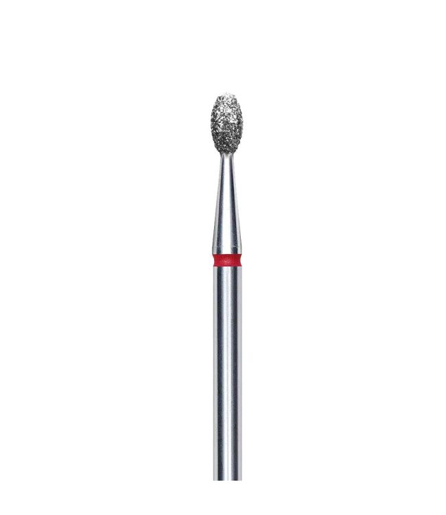 Staleks Pro Diamantfrees Bitje Olive Rood Fijn 2.5mm/5mm is een opzet bit voor een elektrische nagelfrees. Dit bitje heeft de vorm van ovaal een diameter van 2,5mm en een fijne grit. De olive heeft een afgeronde top en is perfect voor het bewerken van nagelriemen, laterale nagelplooien en het uitvijlen van losse stukjes zonder risico op huidbeschadiging. De frees heeft een rood bandje, wat aangeeft dat deze een fijne, zachte grit heeft. De fijne grit is geschikt voor dunne tot normale huid en nagelriemen. Het freesbitje is gemaakt van roestvrij staal met een verhard laagje diamant poeder. De standtijd van diamant is 30 tot 40 keer hoger dan van hardmetaal. De diamanten coating maakt het freesje langer bruikbaar. De frezen van Staleks Pro zijn dan ook gespecialiseerd voor professioneel gebruik bij manicures en pedicures. De frees heeft een werkgedeelte van 5mm. Deze universele maat past op bijna elke nagelfrees.