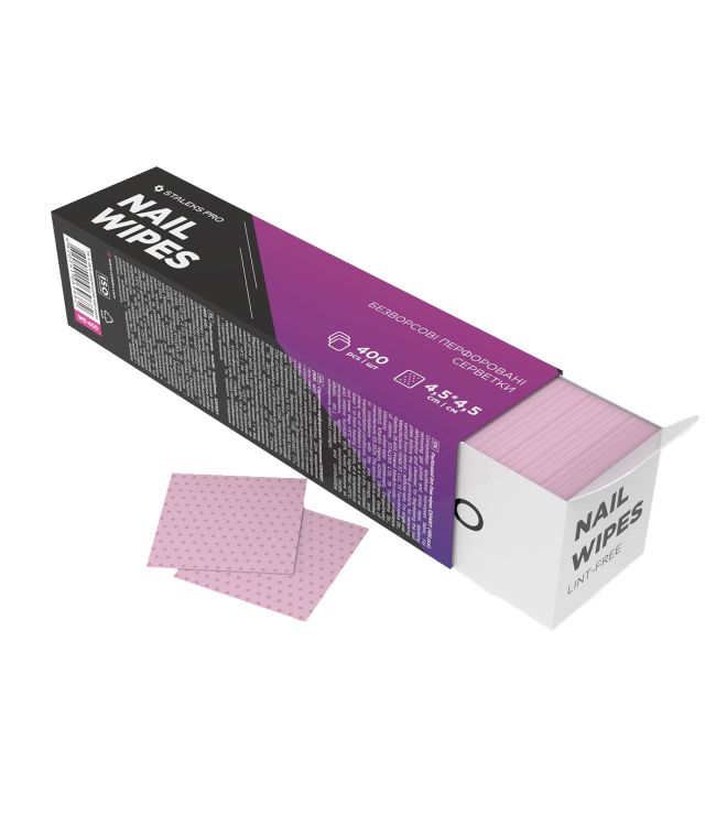 Staleks Pro Geperforeerde Nail Wipes Pluisvast Roze 400st. zijn lint-free nail wipes voor manicure behandelingen in een roze kleur. Deze nail wipes zijn ideaal voor het verwijderen of bijwerken van nagellak of gellak met remover of aceton. Ook kunnen hiermee nailart, gel- of acrylkwasten worden schoongemaakt. Met cleaner zijn de doekjes ideaal voor het verwijderen van een plakkerig dispersielaagje en voor het ontvetten van de nagelplaat bij natuurlijke of kunstnagels. De doekjes zijn absorberend en slijtvast. De lint-free wipes laten geen vezels of pluizen achter. Dit maakt de Nail Wipes ideaal voor professioneel gebruik bij manicure en pedicure behandelingen. De doekjes hebben een formaat van 4.5x4.5 cm en zijn gemaakt van zacht spunbond materiaal. In de verpakking zitten 400 stuks.
