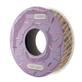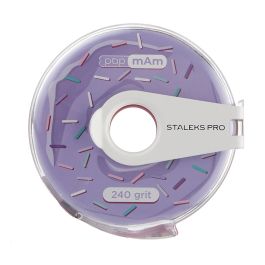 Staleks Pro Nagelvijl Schuurband Donut in Houder 150 Grit is een handige rol met wegwerp vijlen in een witte kleur. De rol biedt vrijheid in de lengte van de vijl en werkt gemakkelijk. Op 1 rol 7 meter wat goed is voor tot wel 80 wegwerp nagelvijlen in een compact formaat. Het schuurrolletje zit in een handige, beschermende doos met leuke donut print. Deze rol met roze details heeft een grit van 150. Een middel grove grit van 150 is vooral geschikt om te werken met harde nagels zoals acrylnagels of gelnagels. Deze grit is iets zachter dan de 100 grit en daarom vooral geschikt voor het navijlen van gelnagels en acrylnagels. Gebruik dit type vijl niet bij nieuw aangebrachte acrylnagels, omdat de grofheid de nog niet volledig uitgeharde molecuulstructuur van de nagels kan aantasten.