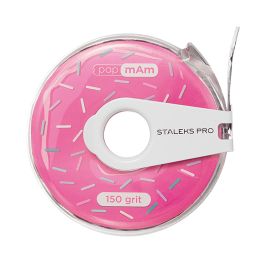 Staleks Pro Nagelvijl Schuurband Donut Navulling 100 Grit is een refill rol met wergwerp vijlen voor de Donut Houder van Staleks Pro. In de rol zit 7 meter vijl in een witte kleur wat goed is voor tot wel 80 nagelvijlen. De rol biedt vrijheid in de lengte van de vijl en werkt gemakkelijk. Deze rol met turquoise details heeft een grit van 100. Een grove grit van 100 is vooral geschikt om te werken met harde nagels zoals acrylnagels of gelnagels. Ideaal om kunstnagels bij te vijlen en in te korten. Ook geschikt voor het verwijderen van gelnagels. Gebruik dit type vijl niet bij nieuw aangebrachte acrylnagels, omdat de grofheid de nog niet volledig uitgeharde molecuulstructuur van de nagels kan aantasten.