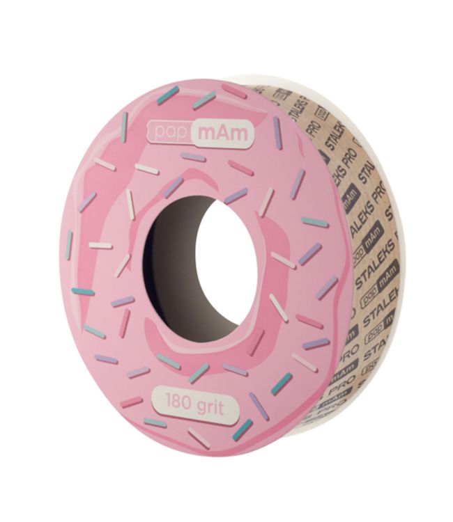 Staleks Pro Nagelvijl Schuurband Donut Navulling 180 Grit is een refill rol met wergwerp vijlen voor de Donut Houder van Staleks Pro. In de rol zit 7 meter vijl in een witte kleur wat goed is voor tot wel 80 nagelvijlen. De rol biedt vrijheid in de lengte van de vijl en werkt gemakkelijk. Deze rol met roze details heeft een grit van 180. Een medium grit van 180 is ideaal om nageltips mooi over te laten lopen in de natuurlijke nagel. Voor nieuw aangebrachte kunstnagels is 180 grit de beste optie. Dit type vijl is ook voorzichtig te gebruiken op de natuurlijke nagels.