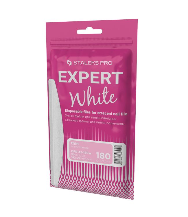 De Expert plakvijlen van Staleks Pro hebben een zeer betrouwbare hechting en behouden lang hun eigenschappen. De plakvijl is gemaakt voor eenmalig gebruik om hygiënisch en veilig te werken in de salon. De DFE-42-180 is een dunne plakvijl. In de verpakking zitten 50 stuks. Staleks Pro Plakvijl Wegwerp White Expert 42/180 Grit Crescent is geschikt om te gebruiken met de metalen of kunststof Crescent nagelvijl basis.
