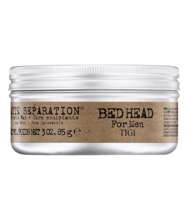 Tigi Bed Head Men Matte Separation Workable Wax 85gr. is een modellerende wax speciaal voor mannen. Een modellerende wax, maakt het haar niet vet en geeft een matte look. De Seperation Workable Wax werkt vochtwerend zodat het haar altijd in balans blijft. Tigi Bed Head Men Matte Separation Wax geeft een natuurlijke finish en is vrij van SLS, sulfaten, parabenen en siliconen. De wax heeft een zeer sterke hold van 5/5.