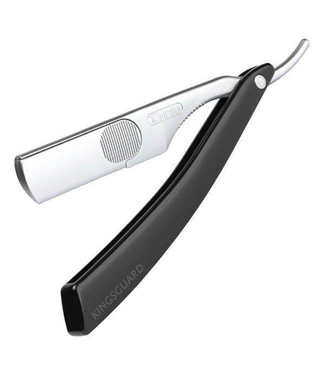 Tondeo Solingen Kingsguard Apparaat inclusief 10 TCR mesjes is een kappersmes voor scheren en contouren. Dit mooie, traditionele mes maakt scheren over het gehele blad mogelijk. De hoekbescherming is expres weggelaten, zodat de punt van het blad gebruikt kan worden om precieze contouren mee te maken. Scheren is gemakkelijk dankzij het massieve, metalen scheermeshouder met zwaartepunt in het voorste deel voor optimale balans. De Tondeo Solingen Kingsguard Barber's Toolbar wordt geleverd met 10 TCR mesjes. De korte TCR-scheermesjes zijn perfect voor exact en precies scheren. De mesjes worden gehalveerd voor nog beter resultaat.