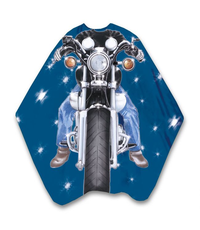 Kaplaken Kinder Easy Rider 135 x 125 cm is een kaplaken met een drukknoop sluiting. Dit kaplaken is afneembaar en voelt dun en glad aan. Het kaplaken is blauw en heeft een print van een motorrijder. Doormiddel van de drukknopen kan dit kaplaken afgesteld worden op elke gewenste maat. Een kaplaken wordt gebruikt tijdens het knippen, verven of andere haarbehandelingen van het haar. Meer Lezen