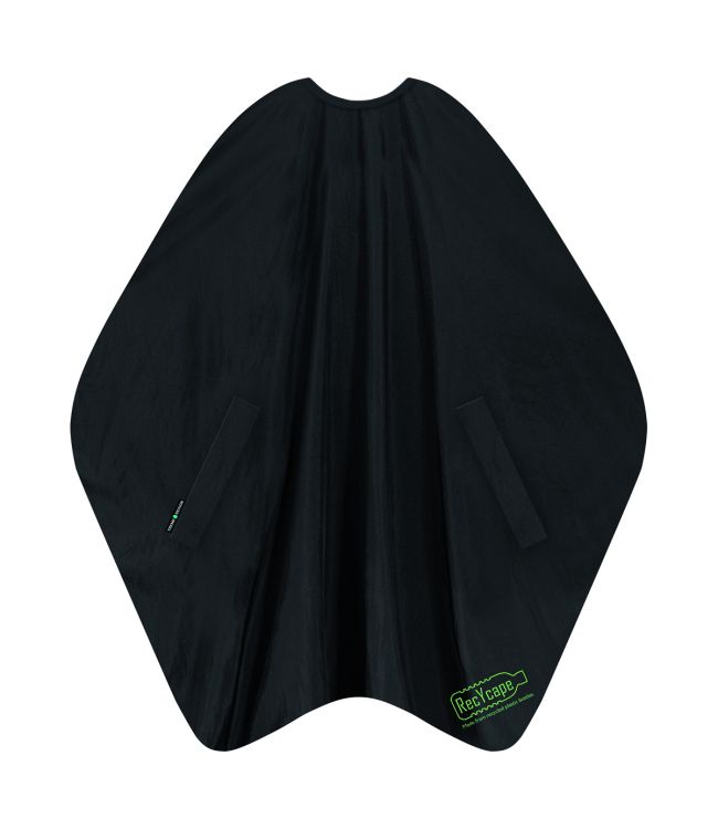 Kaplaken RecYcape Zwart 135x150 is een zwart kaplaken van TrendDesign. De RecYcape is gemaakt van 100% gerecycled polyester (RPET). Voor elke cape worden 12 plastic flessen gerecycled. De kapmantel is bijzonder goed ademend en heeft een sluiting met dubbele haak en drukknoopsluiting. Het kaplaken is afneembaar met een vochtige doek en heeft een afmeting van 135 x 150cm. Dit kaplaken is een knipmantel en niet geschikt voor kleuren, verven en/of chemische behandelingen.