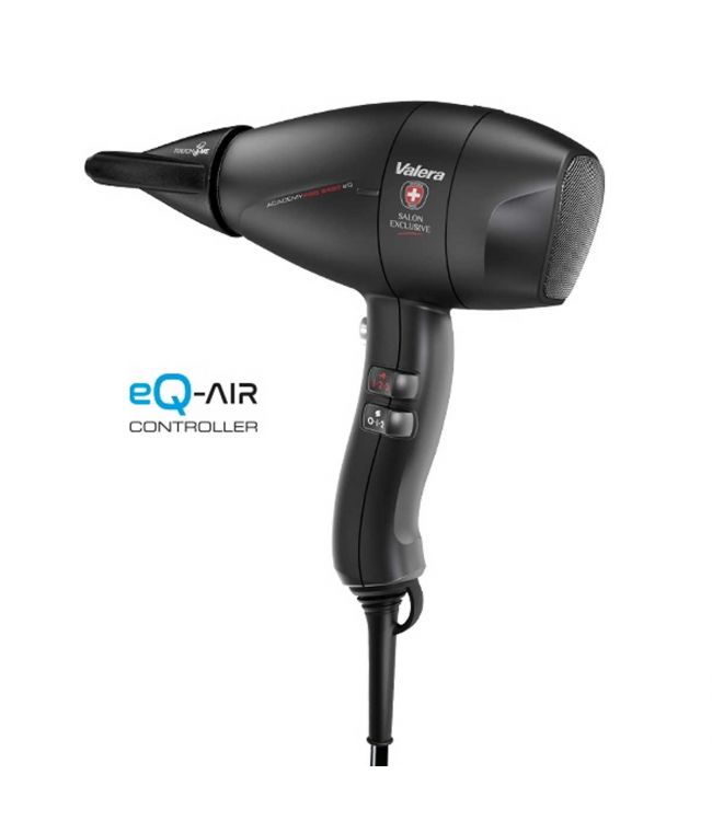 Valera Salon Exclusive Föhn Academy Pro 2400 EQ 2200W is een duurzame, ultra compacte en krachtige haardroger. De Acadamy Pro 2400 heeft een borstelloze, digitale BLDC-ENDURO-X SELECT-motor met extreme motorduurzaamheid van 10.000 uur. De Valera Acadamy Pro EQ bevat het eQ-AIR Controller systeem met intelligente airflow van 93 m3/h en een adaptieve luchtdrukstabilisator. Hierdoor droogt het haar tot wel 50% sneller en kun je efficiënt werken. De ionische föhn beschikt over 6 snelheid en temperatuur combinaties en een Cool-Shot functie voor direct koude lucht. De Acadamy Pro 2400 EQ heeft een ionen generator die voorkomt dat het haar pluizig en statisch wordt.