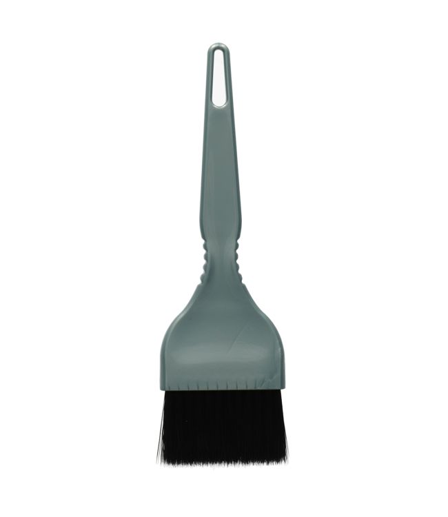 Verfkwast Grijsblauw Metallic Breed is een grote verfkwast van 50mm breed. Met deze verfkwast breng je eenvoudig haarverf of blondering aan. De kwast heeft een kunststof handvat die prettig in de hand ligt. Het handvat heeft een metallic grijs-blauwe kleur en de haren zijn glanzend zwart.
