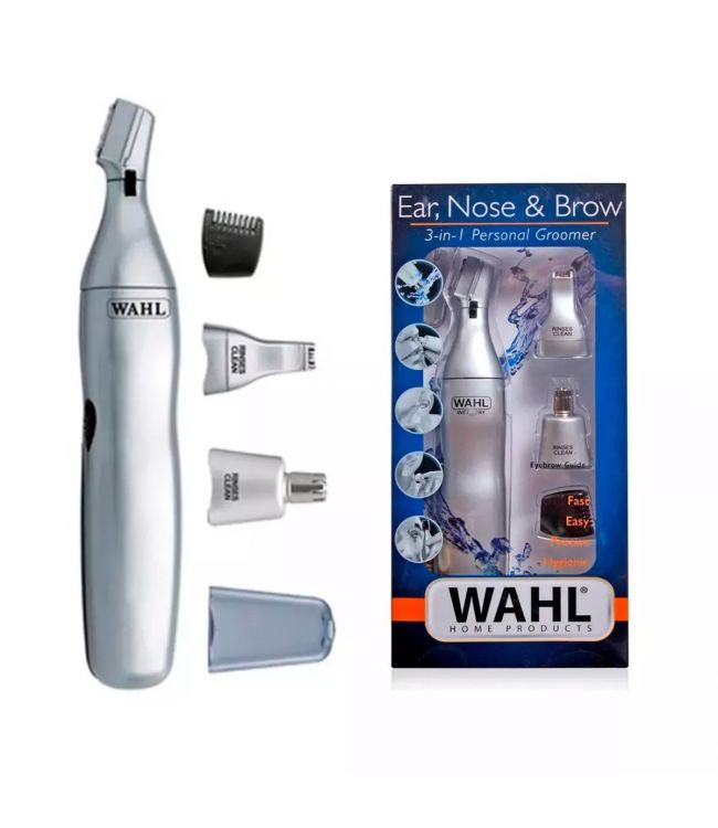 Wahl Neus Trimmer Wet & Dry Triple Head is een unieke draadloze precisietrimmer die geschikt is voor verschillende haarsoorten. De trimmer kan gebruikt worden voor neus, oren en wenkbrauwen dankzij de 3 meegeleverde opzetstukken. De Wahl trimmer kan gebruikt worden op natte en droge haren en deze trimt de haren snel, makkelijk, precies en hygiënisch weg. De Wahl Tripple head werkt op een AA-batterij en is hierdoor overal te gebruiken.