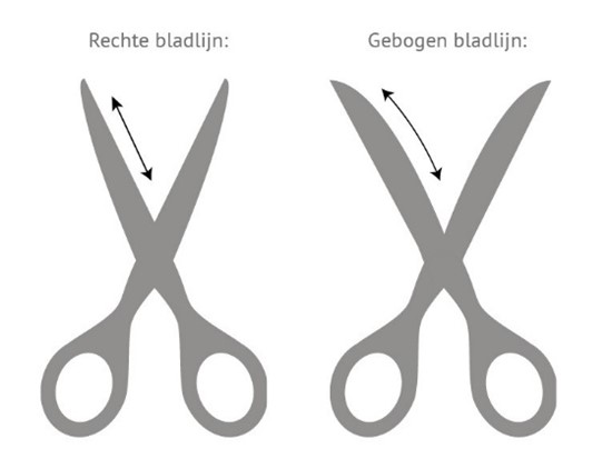 Is de bladlijn recht, dan is de kappersschaar ideaal voor het knippen van botte en strakke lijnen. Als de bladlijn gebogen is, dan is de kappersschaar perfect voor het knippen van zachte lijnen en slicen.