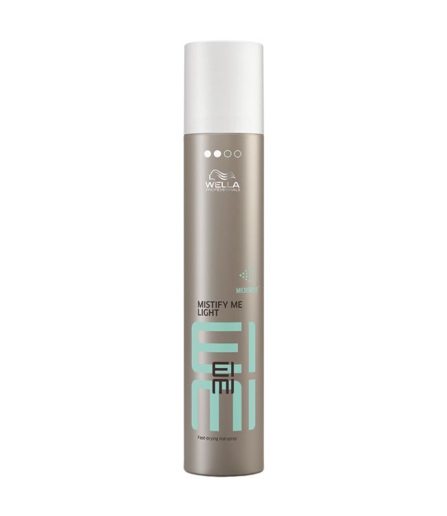 Wella EIMI Mistify Me Light 75ml is een onmisbare stylingtool voor stylisten. Deze Mistify is een lichtgewicht, sneldrogende hairspray. EIMI vult zijn assortiment hairsprays aan met 2 nieuwe sneldrogende en lichtgewicht sprays met de nieuwe MICROMIST TM technologie.