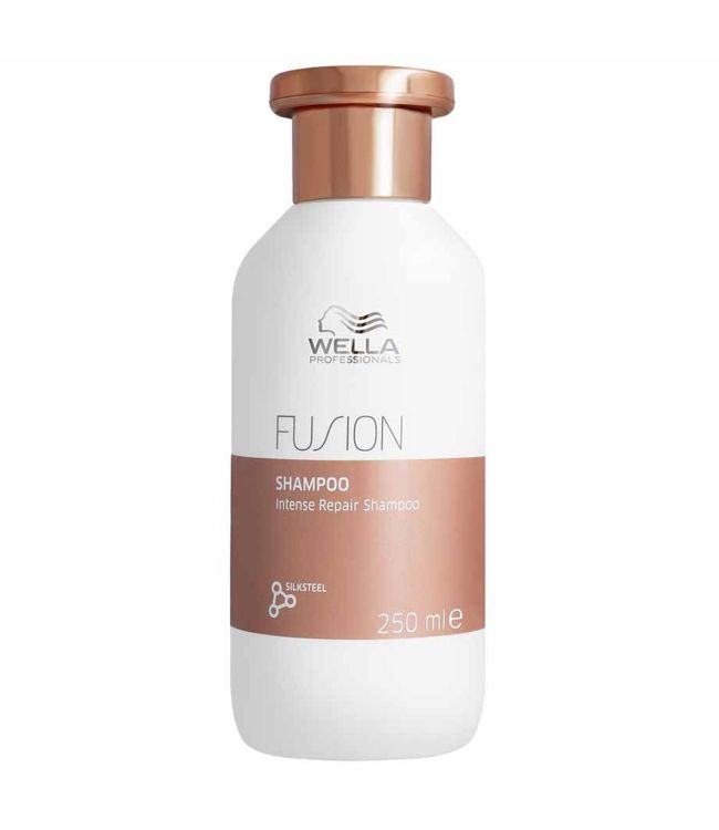Wella Fusion Intense Repair Shampoo 250ml is een delicate, intensief herstellende shampoo voor beschadigd en breekbaar haar. Deze shampoo bevat zijdeaminozuren waardoor het haar weer sterk en handelbaar wordt. Geïnspireerd door Silksteel Spider Silk, één van de sterkste vezels uit de natuur. Deze shampoo biedt bescherming tegen mechanische schade, schade door kammen, schade door hitte styling en haarbreuk. Het haar wordt herstelt en toekomstige schade wordt voorkomen. De formule dringt diep door in de haarvezel en herstelt deze van binnen uit. Na gebruik van de Wella Fusion lijn is het haar tot 95% meer veerkrachtig tegen breuk. De conditionerende ingrediënten helpen om het haar schoon en verzorgd achter te laten. Het resultaat is glad, zijdezacht, veerkrachtig en sterker haar.