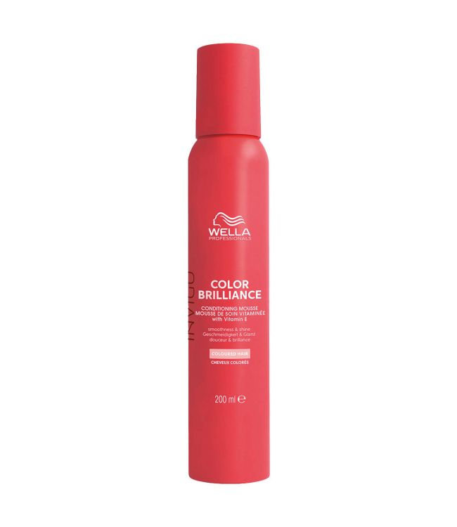 Wella Invigo Color Brilliance Conditioning Mousse 200ml is een luchtige vitaminemousse voor gekleurd haar. De mousse zorgt voor gladheid, glans en een levendige kleur. Anti Oxidant Shield Technology beschemt de kleur langdurig tegen vervaging. De mousse is verrijkt met Vitamine E om het oxidatieproces onder controle te houden en de haarkleur te beschermen. De Conditioning Mousse verzorgt het gekleurd haar en biedt lichte versteviging zonder het haar vettig te maken.