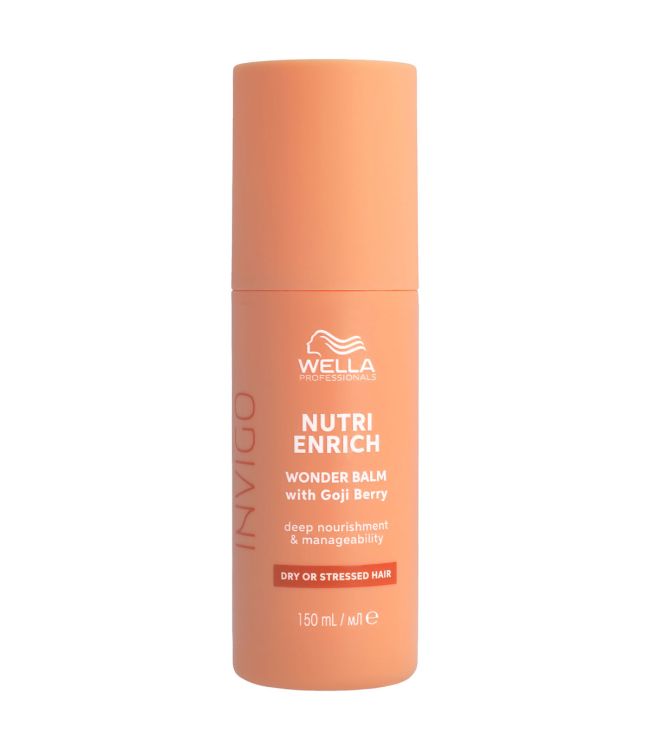 Wella Invigo Nutri Enrich Wonder Balm 150ml is een anti-pluis leave-in balsem voor droog en/of gestrest haar. De wonderbalsem biedt langdurige intensieve voeding voor het haar. Het haar wordt glad, handelbaar, glanzend en soepel. De professionele formule is ontwikkeld om droog en beschadigd haar te voeden en weer glad en vitaal te maken. Het Nutri Enrich Complex bevat Oleic Acid en Panthenol om het haar te hydrateren. Vitamine E beschermt tegen externe stress factoren. Daarnaast is de formule verrijkt met Goji-bessen die bekend staan om hun rijke vitamines, mineralen en peptiden. De Wonder Balm dringt diep door in de vezel van iedere haarlok voor een glad, pluisvrij en zacht resultaat.