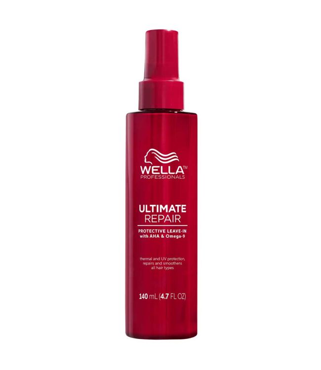 Wella Ultimate Repair Protective Leave-In 140ml is een beschermende 5-in-1 crème tegen alle vormen van haarschade. De beschermende spray is Step 4 en tevens de laatste stap in de Ultimate Repair routine. De delicate formule beschermt het haar onmiddelijk tegen de 5 belangrijkste factoren van haarschade: breuk, UV-straling, hitte, mechanische beschadiging en pluizen. Het resultaat is zichtbaar gladden, gezonder uitziend en gemakkelijker te stylen haar. De Protective Leave-In biedt hittebescherming tot 230 graden en vermindert pluizen tot wel 72 uur.
