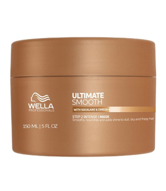 Wella Ultimate Smooth Mask 150ml is de meest luxe haarverzorging voor glad, glanzend en pluisvrij haar in slechts 30 seconden! De diep verzorgende, romige formule is verrijkt met Squalane & Omega-9 voor intensieve voeding en zacht haar van binnen en buiten. Bovendien vormen deze ingrediënten een beschermende barrière rondom het haar. Het Ultimate Smooth Mask Step 2 - INTENSE voedt het haar extra diep en zorgt voor een perfecte, gemakkelijkere ontwarring. Het resultaat is tot wel 3 dagen zachter, gladder en glanzender haar. Het masker heeft een heerlijke geur met noten van jasmijn, vanille en sandelhout die een spa-ervaring creëert.