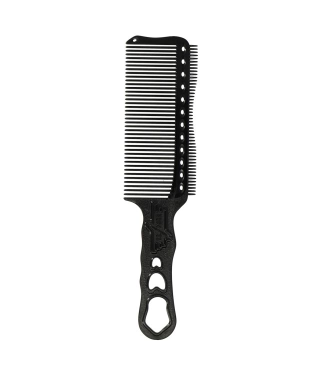 Y.S Park Tondeusekam Groot Carbon YS-s282T Zwart is een multifunctionele tondeuse kam. Deze flattop kam is ideaal voor scheren over kam technieken. Hiermee kun je gemakkelijk en snel kapsels in model brengen met een tondeuse. Doordat de kam met 2,5mm erg dun is kun je hier zeer korte kapsels mee creëren. Op de rug van de kam zit een rij met kleine tandjes. Deze zijn speciaal ontworpen om kleine haartjes na een scheerbeurt mee weg te borstelen. Het is mogelijk om een hoek van 90 graden op de hoofdhuid te vinden door het concave deel van de kampunt op de hoofdhuid te plaatsen. De kam is zeer licht, flexibel en ligt comfortabel in de hand. De kam is gemaakt van zacht carbon en is hittebestendig tot 220℃.